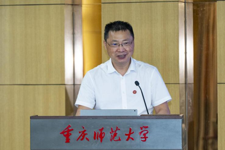 校长王国胤教授出席开幕式并致辞。王国胤代表学校对参加本次研讨会的各位贵宾表示热烈欢迎与衷心感谢,并简要介绍了学校的发展历程和办学成果,重点介绍了我校在人工智能和数字化技术时代背景下,在学科建设、科学研究和人才联动发展中,大力促进学科交叉融合、不断探索科研新范式的具体做法。华中师范大学赵蕴杰教授代表组委会致辞,介绍了本次学术研讨会筹备及举办的重要性。