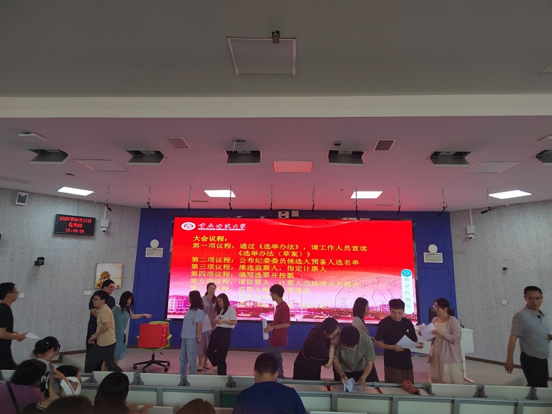 选举环节,党员们秉持高度责任感,认真填写选票,有序投出神圣一票。经严谨计票,朱洪强、吴建伟、张菊花、郭盼等4位同志脱颖而出,以超过应到会有选举权党员半数的赞成票,正式当选为纪委委员。大会在激昂的《国际歌》声中圆满落幕。