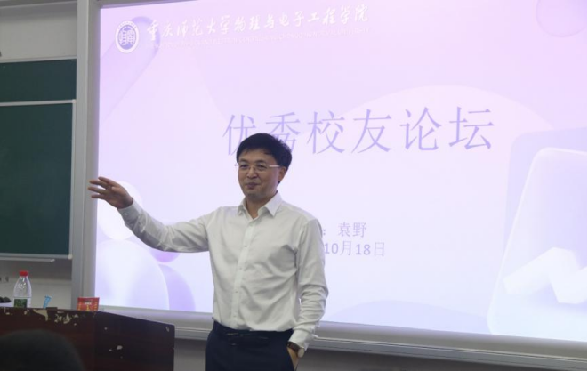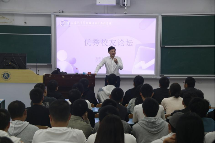 成功举办优秀校友论坛。2025年10月18日,在弘德楼15203教室,特邀学院1993级校友袁野返校给2025级电子信息科学与技术专业全体学生做讲座。讲座由学院党委书记杨云主持。