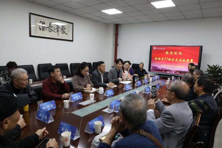 77级校友是我国恢复高考制度后的首届大学生,是1977年12月份通过高考从570多万考生中选拔进入大学的,是全国唯一一届春季入学、冬季毕业的大学生,全国仅有27.3万人。他们同学间年龄差距最大有10多岁,如今基本已退休。他们亲身经历并参与祖国发展腾飞的黄金年代,多年来用所学在各行各业为国家做出巨大贡献。回忆起大学求学时光,校友们纵使两鬓花白仍有当年意气风发的模样,一声声“老师”“班长”“老同学”“师妹”让人仿佛回到四十年前理化楼的课堂。