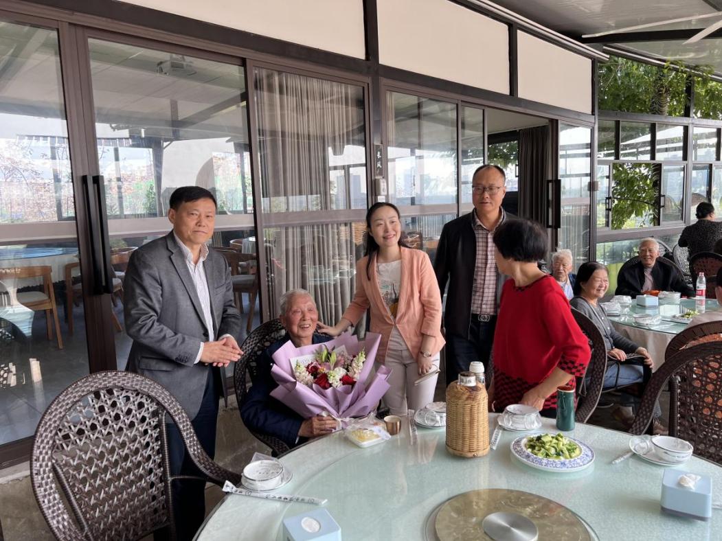 领导班子的高度重视和学院工会精心策划下,本次秋游活动顺利开展。公园里风景如画,空气清新,满目的绿意让老师们心旷神怡。老教师们沿着步道赏花、拍照,叙旧、聊天,一路欢声笑语。当天恰逢王承先老师九十岁、姜继咏老师八十五岁生日,学院精心为两位老师准备了蛋糕和鲜花。学院党委书记杨云、党委副书记曾艳、工会主席范嗣强为两位老教师献上鲜花,并祝他们身体安康、生日快乐。秋日暖阳高照,每个人脸上都洋溢着幸福的微笑!