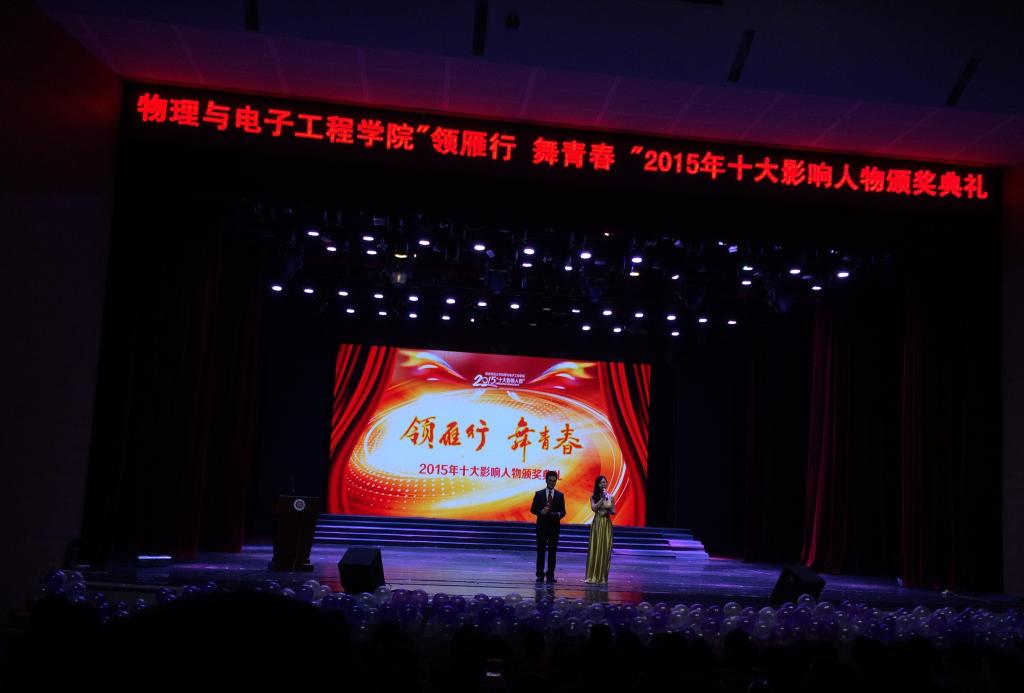 2015年“领雁行,舞青春”十大影响人物颁奖典礼在校友会堂隆重举行。学校职能部门领导、学院党政领导、系主任、专业课教授、辅导员及全体AV狼