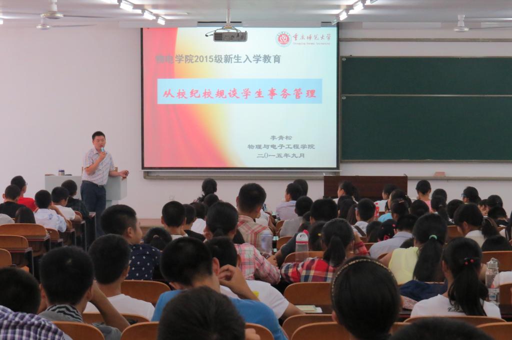 在励志楼2113开展了从校纪校规谈学生事务管理的讲座。15级辅导员陈禹辛担任主持,李青松老师主讲。