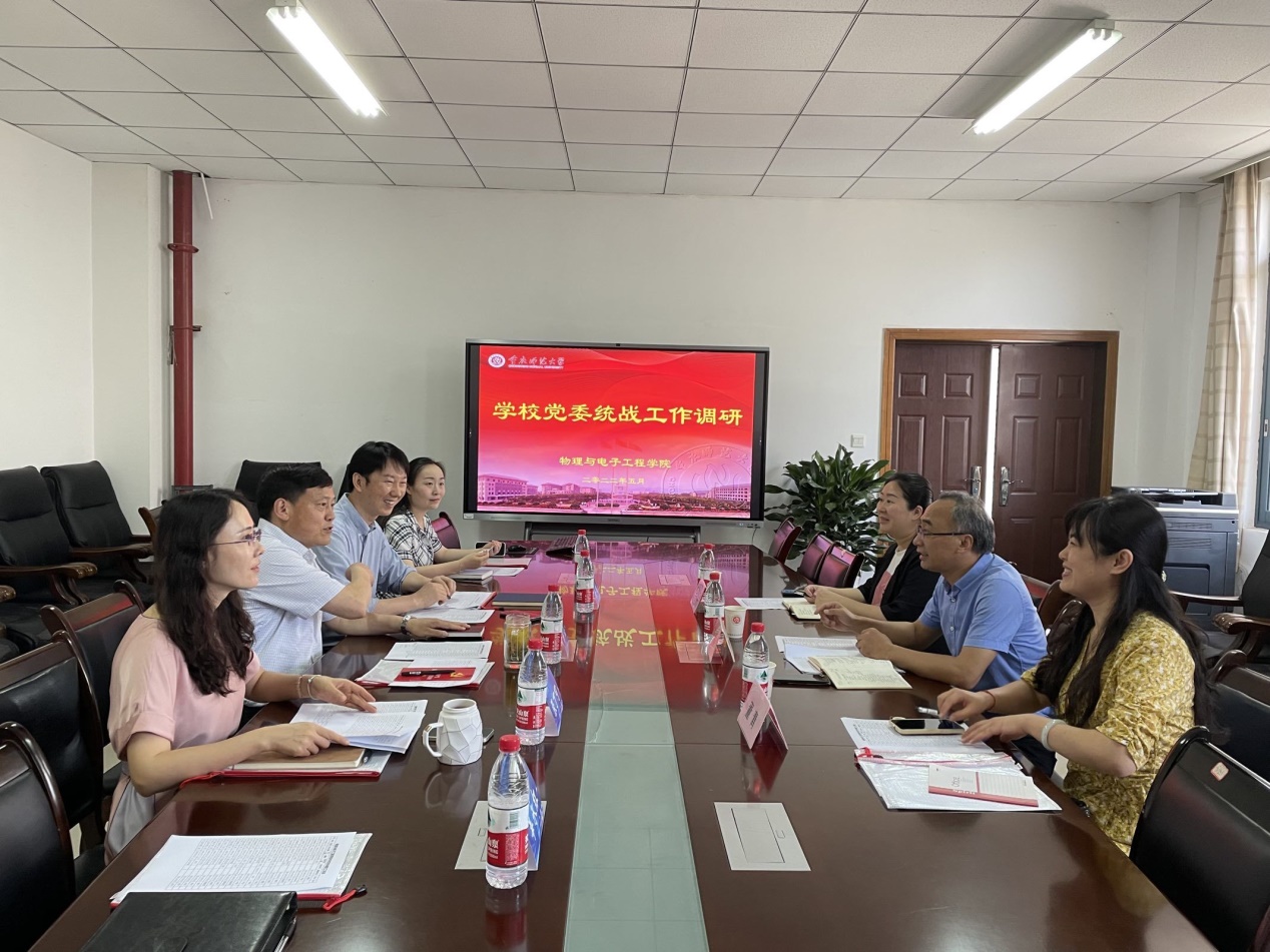 进行统战工作调研,学院党委书记杨云,副院长(主持工作)余鹏、张丁可,党委副书记曾艳和办公室主任辜永红等参加了调研会。