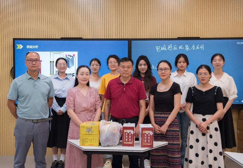 图为:慰问“格致杯”物理师范生技能大赛项目组和全国大学生物理实验竞赛项目组