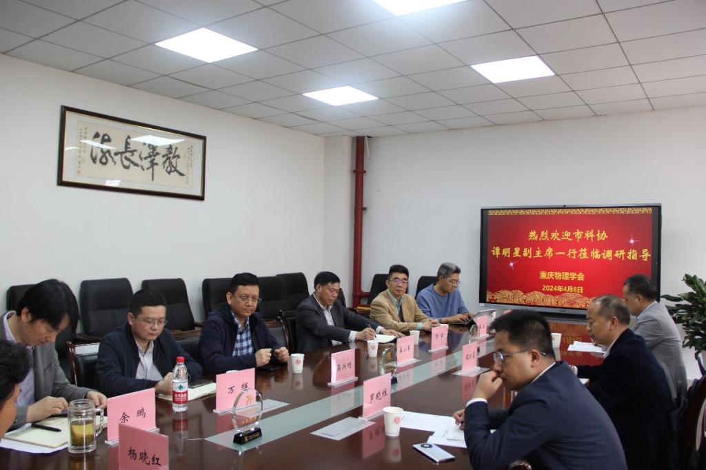 谭明星副主席强调本次调研会旨在进一步了解物理学会工作情况及存在的困难和问题,同时加强与学会之间的交流。吴兴刚理事长就物理学会的职责进行简要汇报;杨晓红秘书长对学会的党建工作、学术研究、人才举荐、科普活动等具体工作和取得的成就进行汇报。与会人员就重庆物理学科相关领域发展进行了现场交流研讨,并提出关于物理学会发展的建设性提议。吴兴刚理事长希望市科协继续对物理学会给予积极关注和支持,并对市科协谭明星副主席一行莅临指导表示衷心感谢。最后,谭明星副主席高度肯定了重庆物理学会的工作和取得的成就,表示市科协将对学会提出的困难和问题给与反馈,并进一步关注和支持学会各项工作。
