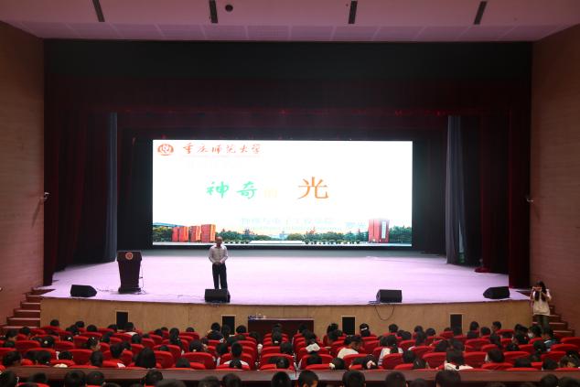 罗光教授首先为同学们带来了精彩的科普讲座——《身边的科学——神奇的光》。在40分钟的时间里,罗光教授对光的产生、光的性质等进行了生动的科普讲解,并现场演示了光的特性,带领同学们走进光的奇妙世界。同学们专注的眼神中满是对知识的渴望。