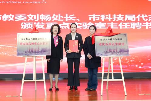党委副书记、校长王国胤分别为两个重点实验室揭牌。随后,刘畅处长和代杰主任为我校发展规划处处长张丁可教授颁发重点实验室主任聘书。两大重点实验室的落地,不仅标志着我校量子科技领域科研平台建设迈上新台阶,更将为区域量子学科发展、高层次人才培养与关键技术创新筑牢坚实支撑,为产学研用深度融合搭建重要桥梁,助力重庆量子产业高质量发展。
