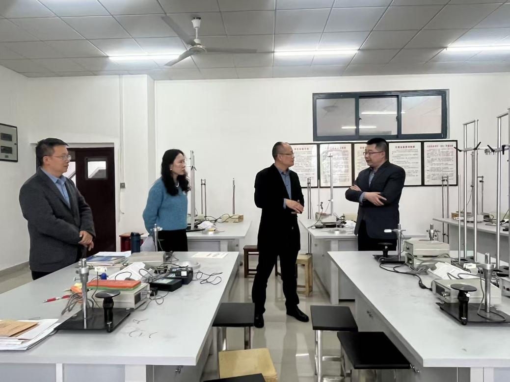 贾涛副校长走访了力热实验室、电磁学实验室、光学实验室、近代物理实验室等教学场地,实地察看实验室硬件配置、教学运行、实验项目开设及教学评价等情况,与一线教师深入交流,详细了解学院实验教学的特色做法与实际难点。