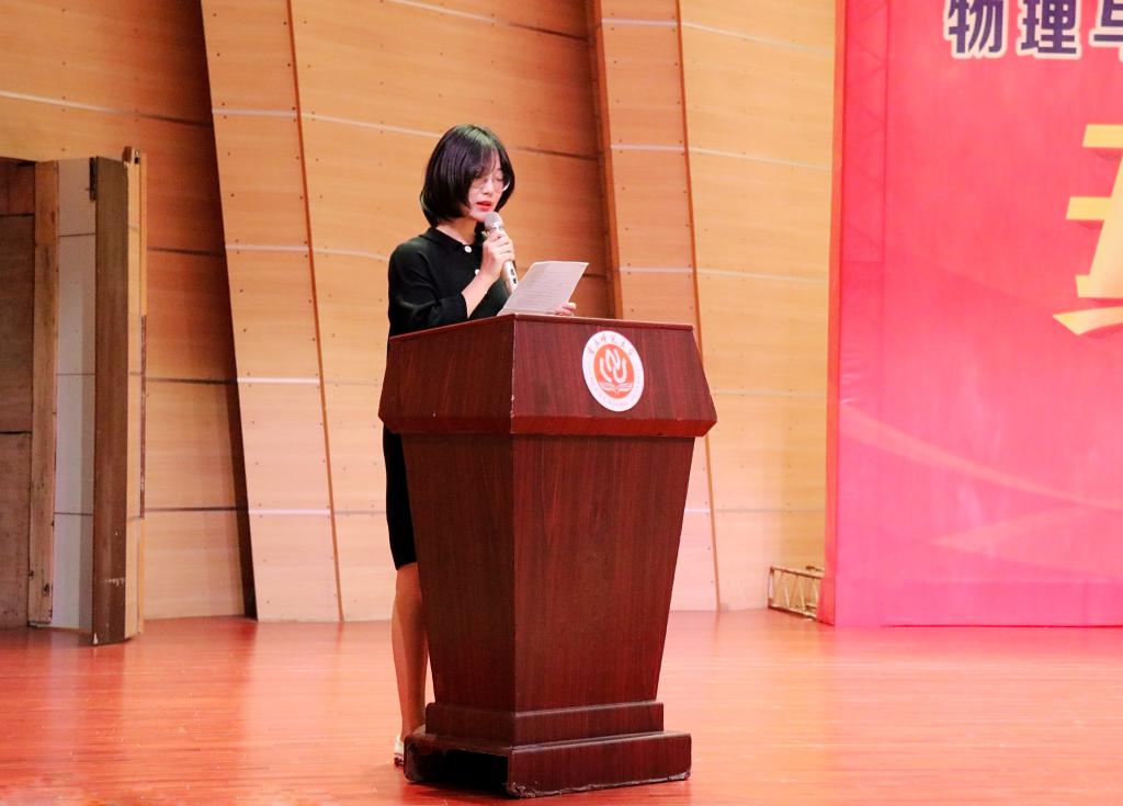 高年级学生代表张茁莉借物电学子们在日常学习、专业竞赛、考研等各方面能够迎难而上、奋进前行,最终获得成功的优秀事例向同学们分享了一个词——坚持,勉励同学们要坚持学习、坚持服务同学,不断提升自我、锻炼自我。