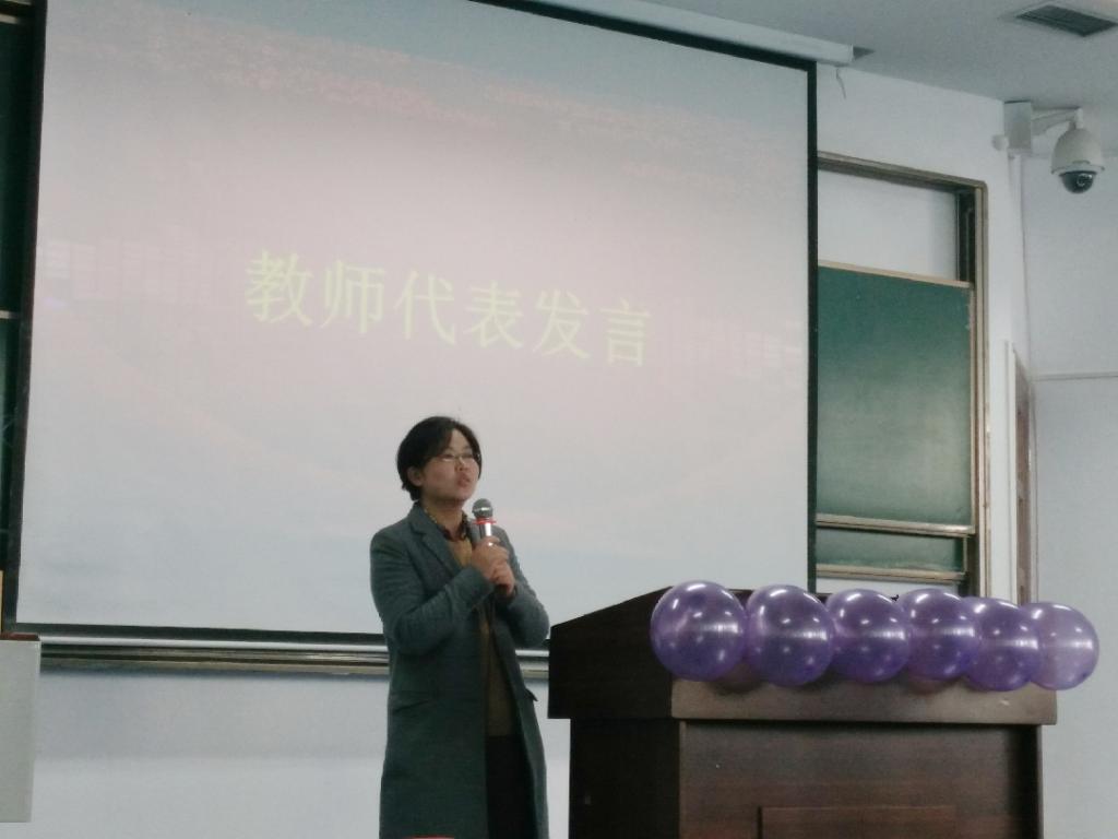 紧接着是优秀教师代表发言。第一位是杨英老师,她为同学们提了三个关于技能比赛的意见与建议。首先第一点是保持参赛内容的完整性,在大家参赛的过程中或许会被指定命题,或许得到的命题知识点很少,或许同学们所有的比赛经验不多,但都要尽力保持课程项目的完整性,它体现的是一个参赛者基本的态度。其次是课程的选择很重要,例如在教学比赛中可以就选择制作一些有创意的教学教具等,大家要参考实际情况做最有考虑的打算。最后则回归到参赛者本身,选手需有师范技能素质,语言简洁流畅,有科学特性,板书合理,ppt制作简洁大方。下一位教师代表是罗海军老师,他的讲话更侧重的是学生们对知识的重视度,“主动充电,别让知识等你”,比赛规定题目看指标,在比赛前期,建议大家针对性的自学知识,电源类,自动控制类,小信号测量类,创新类,清楚自己擅长的类型,做好万全的准备,记住那句“机会是留给有准备的人”。