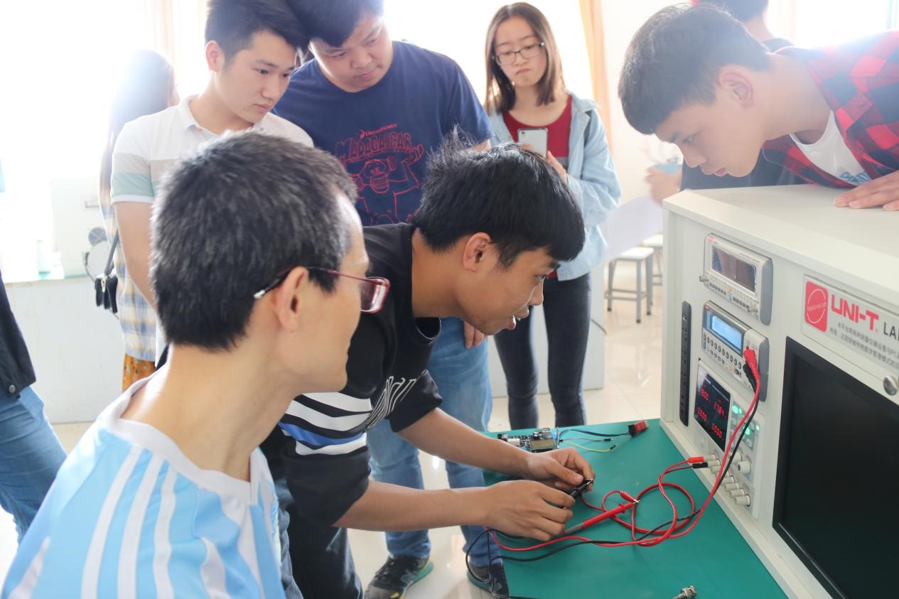 参与本次比赛的共有47个来自不同年级、不同专业的小组,题目形式也是多种多样,具体有“音频功率放大器”、“低频信号发生器”、“四路抢答器”、“无线电能传输装置”、“数控直流电流源”、“简易数字显示交流毫伏表”、“简易电感量测量仪设计”、“光控实验室人数计数器”八组试题。每组依此在老师的基本要求下,对本组的成品进行着连接、调试、检测。经过一个下午的努力,在工作人员的统计下,隔天4月20日,大赛成绩公布。一等奖两组,分别是来自2017级电子职教“无敌小分队”的四路抢答器,和2015级“exp阵列”的数控直流电流源。二等奖五组,三等奖八组,优秀奖十二组。
