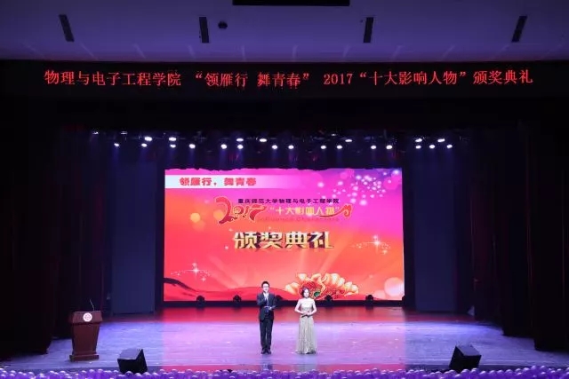 坚持“引领学生、服务学生、成就学生”的工作理念,组织开展了以“领雁行·舞青春”为主题的2017年十大影响人物的颁奖典礼。颁奖典礼于2017年12月24日18:30分在校友会堂隆重举行。AV狼