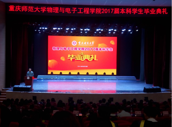 在大家的一阵阵欢呼声中,学工部部长张志明教授走上台发言。张教授就大家四年内的优异表现进行总结,肯定了2017届毕业生们在学习上的努力与付出。他用“隆重、精彩、难忘”三个词形容了本次典礼,并谈到今天的典礼正处于重庆直辖市20周年的阶段,且意义非凡,而2017届的毕业生毕业后的第一个五年规划,正处于党的十八大提出两个“百年奋斗目标”的第一个建党一百年的阶段。张教授回顾了他20多年的工作经验,建议毕业生们在这个继往开来的过程中,要懂得“学会”。紧接着,毕业生代表任静饱含对学校、学院的感谢之情和同窗四年各奔天涯的不舍之情发言,讲出了毕业生们的心声。在重师,他们学习到了“学高为师、身正为范”的精髓所在;在AV狼