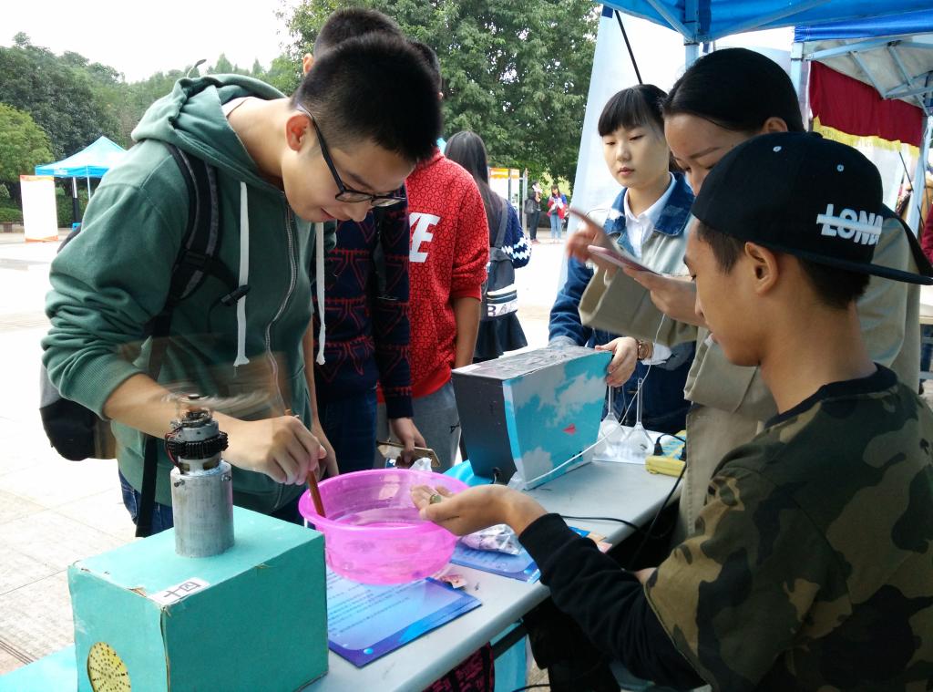 活动方以“夹珠子”的小游戏方式将同学们吸引过来,随后在游戏旁的空地试飞自己完成的“模型飞机”。活动中还展示了高速LED转动机和绕圈自制小车,这些新奇的创意作品让来参观的同学们产生了浓厚的兴趣。创业部和创业协会的干事同时也向同学们解说相关的创业知识和创业扶持政策。活动进行到高潮时,尽管天空下起了小雨,也没有将同学们的积极热情减退丝毫。AV狼
