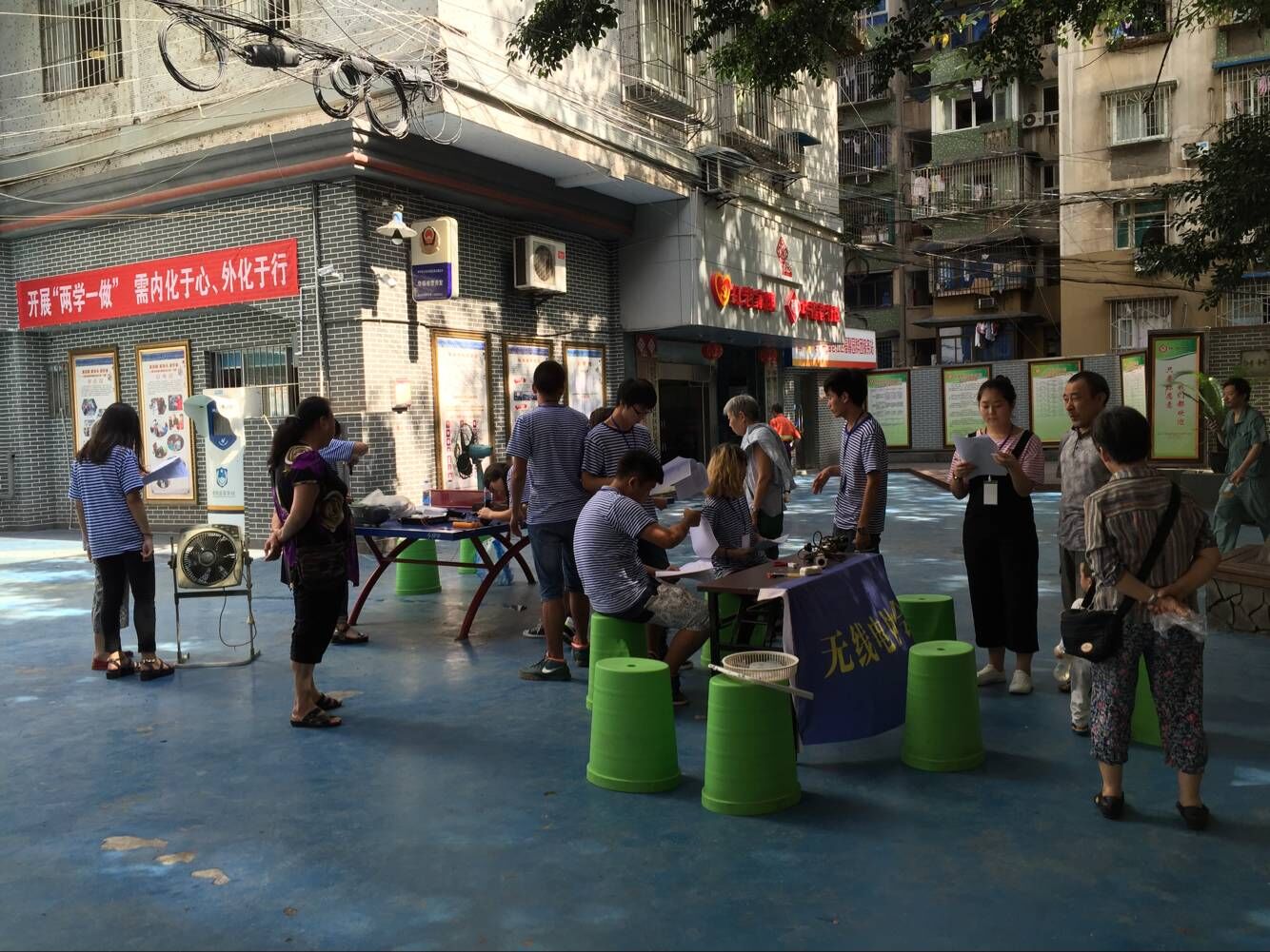 学子结合自身的专业知识,学以致用,于7月16日在渝中区大溪沟街道华福巷社区开展了一项“走进社区,义务维修”的小家电维修活动。