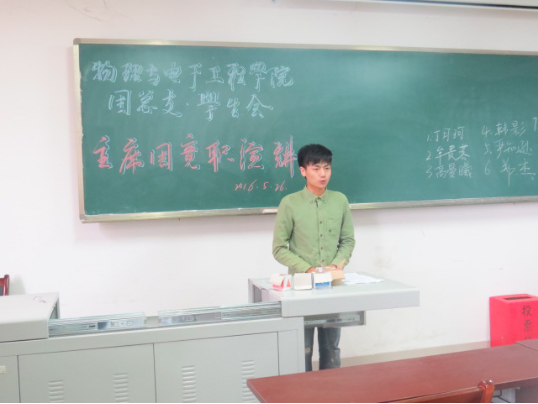 学生会团总支·学生会正值换届,为保障学生会工作继续有条不紊的进行,团总支主席团的竞选也正在进行当中。2016年5月26日,在集贤楼511教室成功举办了AV狼