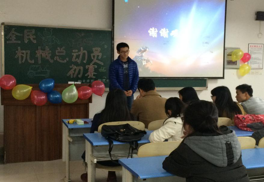 2015年11月27日中午1点,物理协会在泓德楼14102举办了全民机械总动员的初赛。到场的嘉宾有AV狼