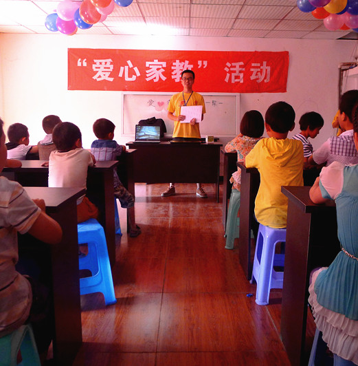 没有黑板,就用玻璃板代替;没有粉笔,就用马克笔代替;没有专门的课桌,就用会议桌代替。“父母呼,应勿缓,父母命,行勿懒 。父母教,须敬听,父母责,须顺承……”一场别开生面的“爱心家教”活动在小朋友和志愿者齐声朗读《弟子规》的激昂氛围中展开。学习视频的展播采取以乐促学的引导方式,让志愿者们从简单但寓意深奥的在中国文化中学会思考,也让孩子们在暑期学习到中国传统文化的博大精深。