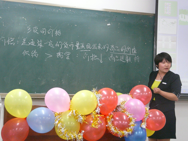 最后,是“师能综合素质大赛”成果展示。一幅幅注入新学的优秀毛笔字作品、钢笔字作品随着音乐而跃动,在座的观众们跌入一场美的享受之中。在理科组一等奖获得者代悦婷带给大家的模拟授课中,她用富有创意的道具将抽象复杂的物理知识具体化、浅显化,使课堂变得生动有趣;文科组一等奖获得者张丽则将“价格的变动”和女生逛街购物的实际事例结合起来,让大家在欢笑中懂得了“价格变动”的原因、意义及影响。