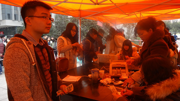 天还未亮,就有大批报考学子在家长、老师的带领下来到学校美术学院的报名咨询点处了解相关事宜。同学们也顶住寒冷为前来询问的学生耐心解释。