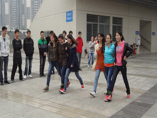 2011级电子信息科学与技术的同学们在大学城校区田径场进行了一场别开生面的趣味运动会,11级辅导员余海蔚出席活动并和同学们一起感受着运动的快乐。经过大一的懵懂,大二的浮躁,大三的同学们,已经找到了各自的奋斗方向,用积极向上的心态面对生活,用运动释放学习压力。
