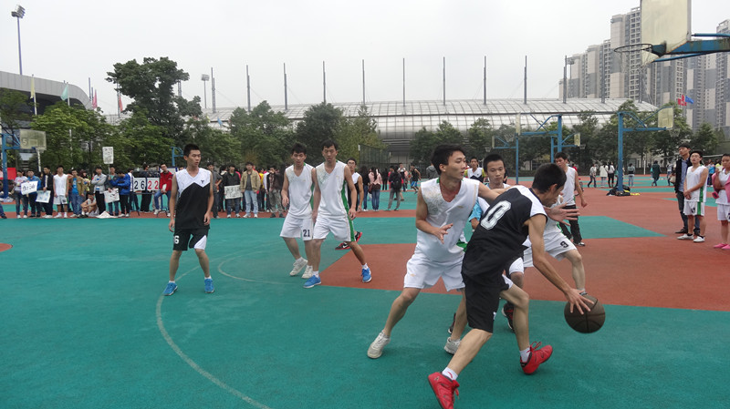 随着裁判员的一声哨响,比赛正式开始。六支队伍三场对抗同时进行:2011级职教班和2013级电子班男子、2012级光电班和2012级职教班男子、2011级职教和2013级电子女子。冬日逐渐寒冷的气息抵挡不住来袭的运动风潮,篮球场上不时传来赢球后喜悦的掌声与喝彩。球场中间是运动员精彩绝伦的速度、力量较量,球场外围是各支队伍拉拉队员的加油鼓励。