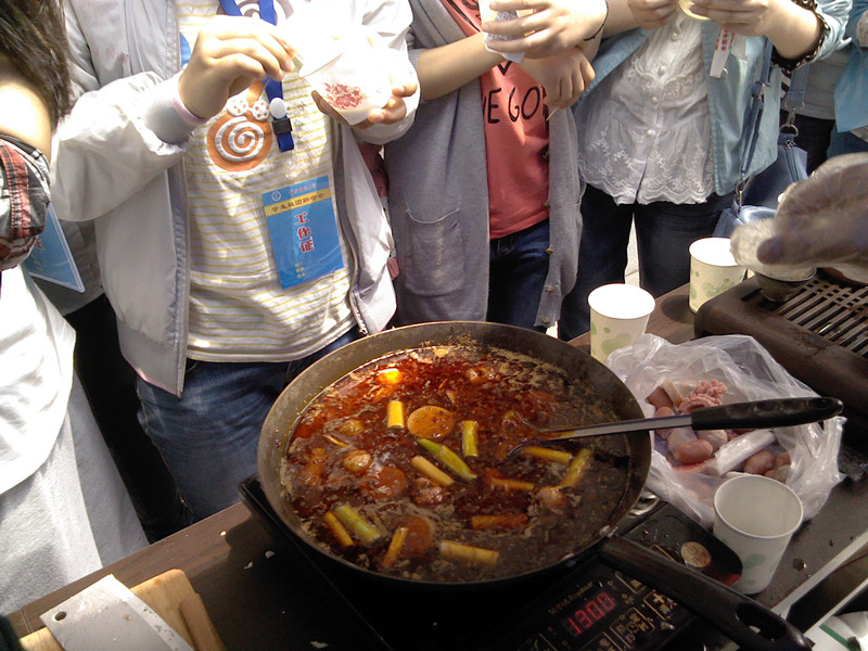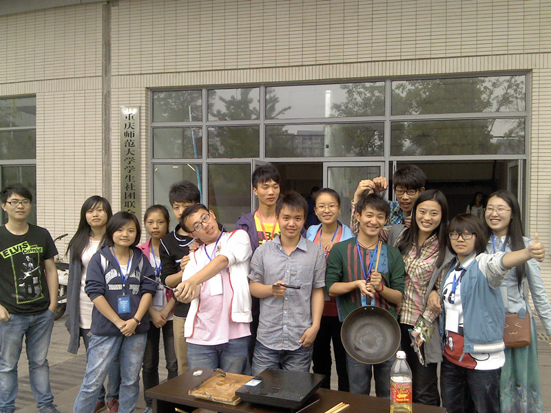 早上10:10,三个协会的干部们便在师能素质协会会长谭利勤的带领之下开始了活动,本次饮食文化节主要是以重庆火锅以及酸菜鱼为主打菜。同时,三个协会还特意邀请了自己协会做菜好吃的会员担任了本次饮食文化节的大厨。