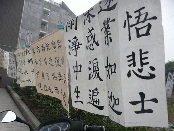 于9栋楼下进行了为期两天的上半学期三笔字训练成果展,引得过路的同学们纷纷前来围观,发出阵阵惊叹。