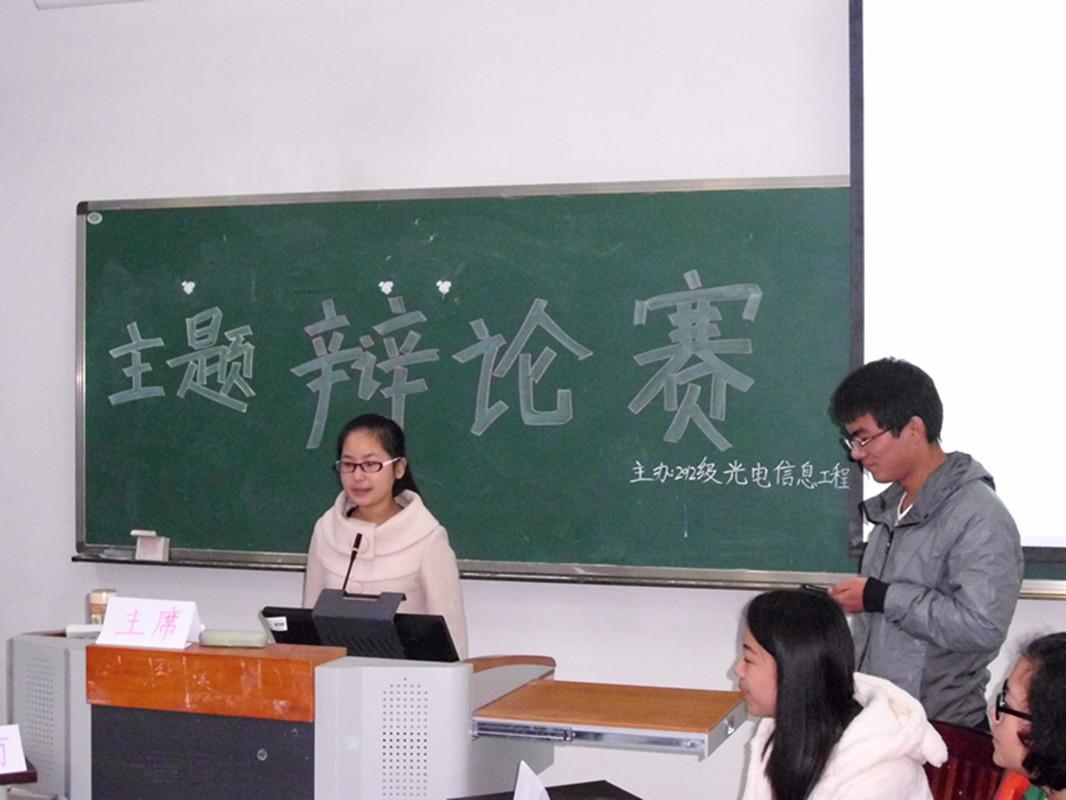 光电信息工程班展开了一场精彩绝伦的主题辩论赛。职业规划阳露老师、班长刘陆和副班长江西和全班同学参加了这次比赛。