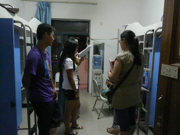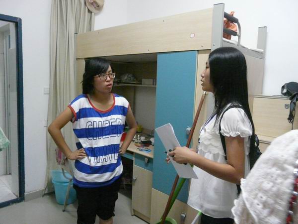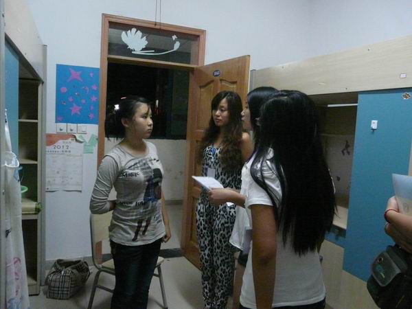 团总支学生会的12名成员在主席团的带领下,来到了2012级大一新生的宿舍对他们的住宿情况进行了了解,同时带去了AV狼