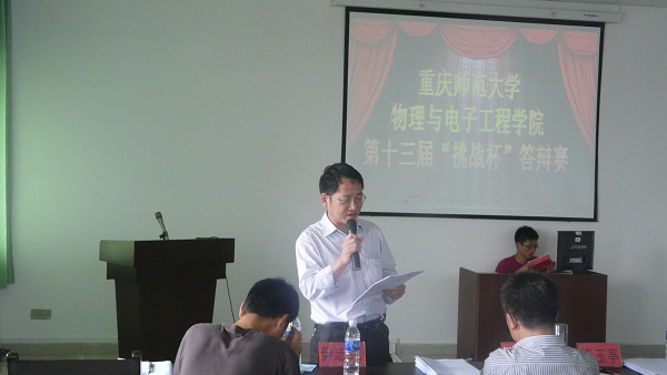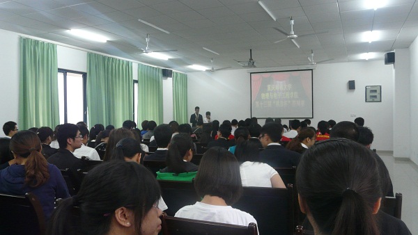 第13届大学生“挑战杯”答辩评审在第二实验楼501举行。参加本次答辩评审的的老师有主持学院工作的副院长崔玉亭教授、党总支书记唐敏,党总支副书记冉久飞、团总支副书记李青松、苑进社教授、毋志民副教授和宋培森副教授。各位老师严肃认真地对待每个项目陈述和答辩,取得了很好的效果。