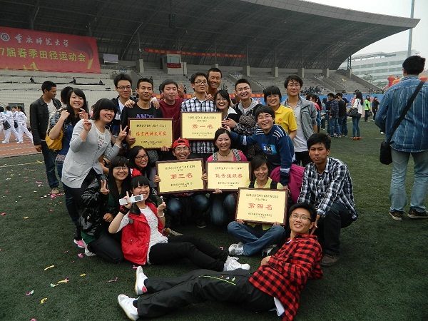 的同学们在此次运动会中再次用自己的勇气和实力囊获了男子团体比赛第一名,女子团体第四名,体育精神文明奖以及在本年度篮球比赛“三好杯”中荣获男篮第三名和优秀组织奖等殊荣。呼喊着,尖叫着,汗水、泪水此时已化为欢笑和激动。运动员们不知牺牲了多少业余时间尽可能来提升自己的体育水平,只为了AV狼