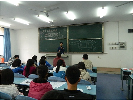 运动员出征仪式在弘德楼15204教室准时举行,到场人员有AV狼
