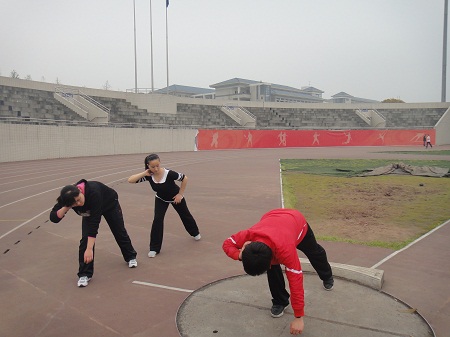 的同学们在田径运动场进行了赛前体能技巧培训,在专业的体育老师带领下,体育部部长谭洋、副部长李强及参加此次运动会的体育健将们有序的进行着体能培训。