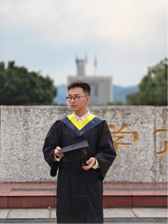 他说:合理规划大学生活,做好学业规划。走出舒适圈,多参加比赛,多参与活动,克服困难,坚持下去,勤奋和汗水终将换来累累硕果。