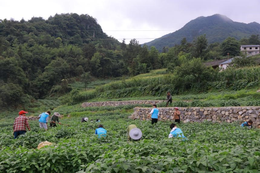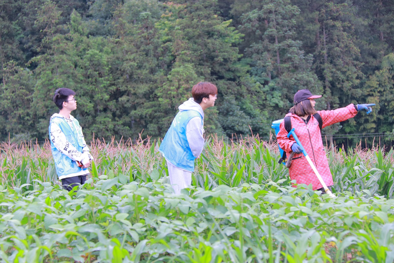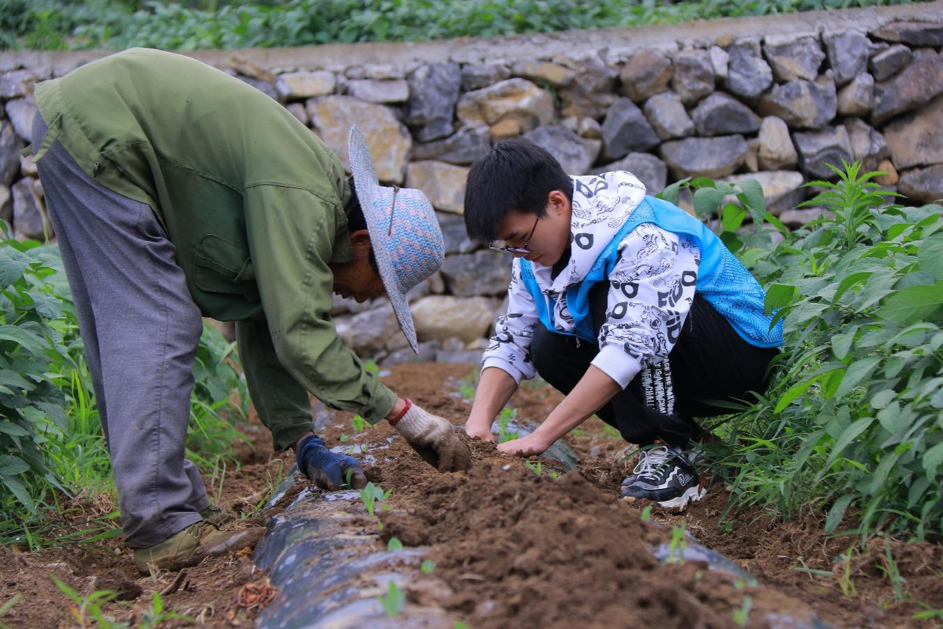 (图为实践队员正在参与玉米种植)