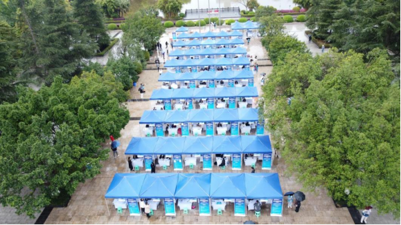 联合渝中区人力资源和社会保障局在大学城校区升旗台广场举办春季双选会活动。