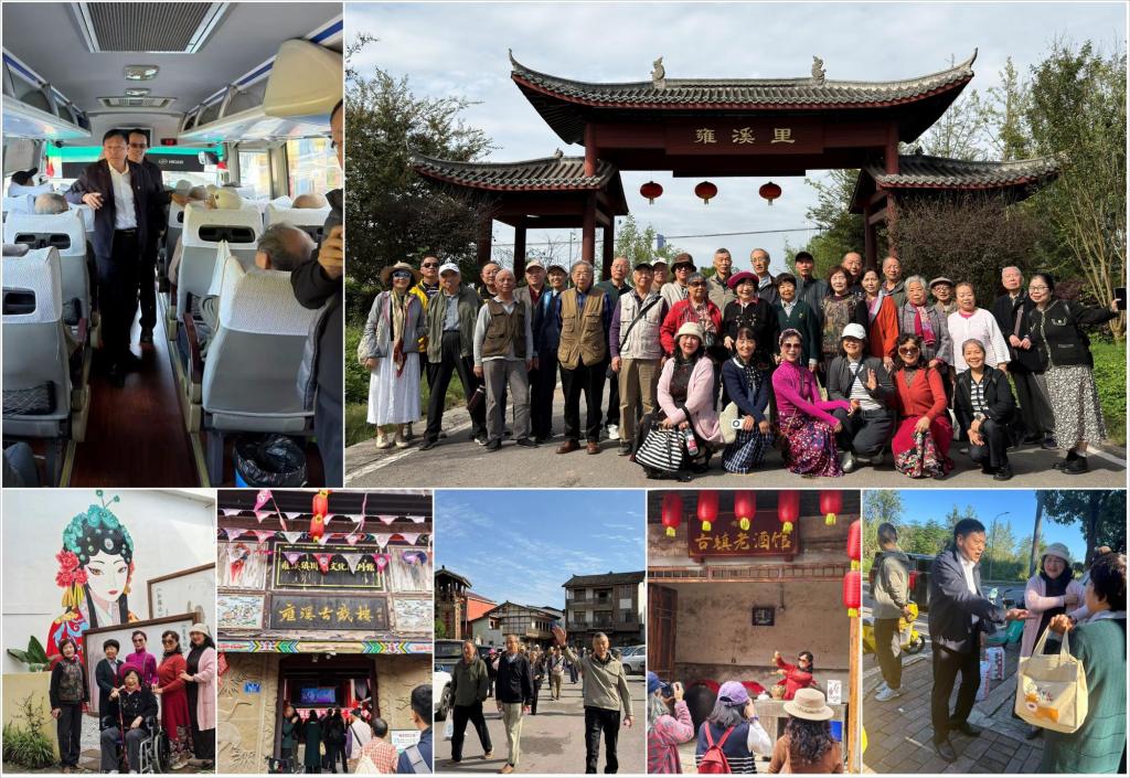 大足雍溪里坐落于石刻之乡,是一处融合了传统建筑风格与现代休闲体验的文化休闲地。漫步于古色古香的雍溪里老街,欣赏古戏楼的川剧韵味,感受“花乡”的独特魅力。白墙青瓦、庭院深深,老同志们漫步其间,欢声笑语不断,沉浸在这座古镇的独特风情中,纷纷在美景前驻足留影,用镜头记录下难忘的秋日时光。既能感受古朴雅致的环境氛围,也可远眺青山绿水,享受自然与人文和谐共生的闲适意境。
