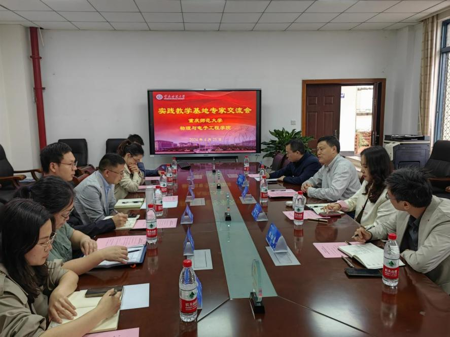 邀请实践教学基地专家莅临学院交流实习实践工作。南渝中学教务处副主任黄亿斌,渝高中学教务处主任谭凌华、教务处副主任张凌,重庆元三数字科技有限公司总经理陈松鑫出席交流会,学院党委书记杨云,教科办主任、各系主任及实习指导教师代表参加会议,会议由副院长张丁可主持。