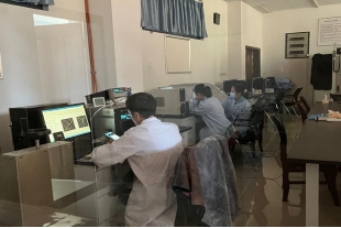 有机电致发光显示器件(OLED)团队研究生正在进行实验测试