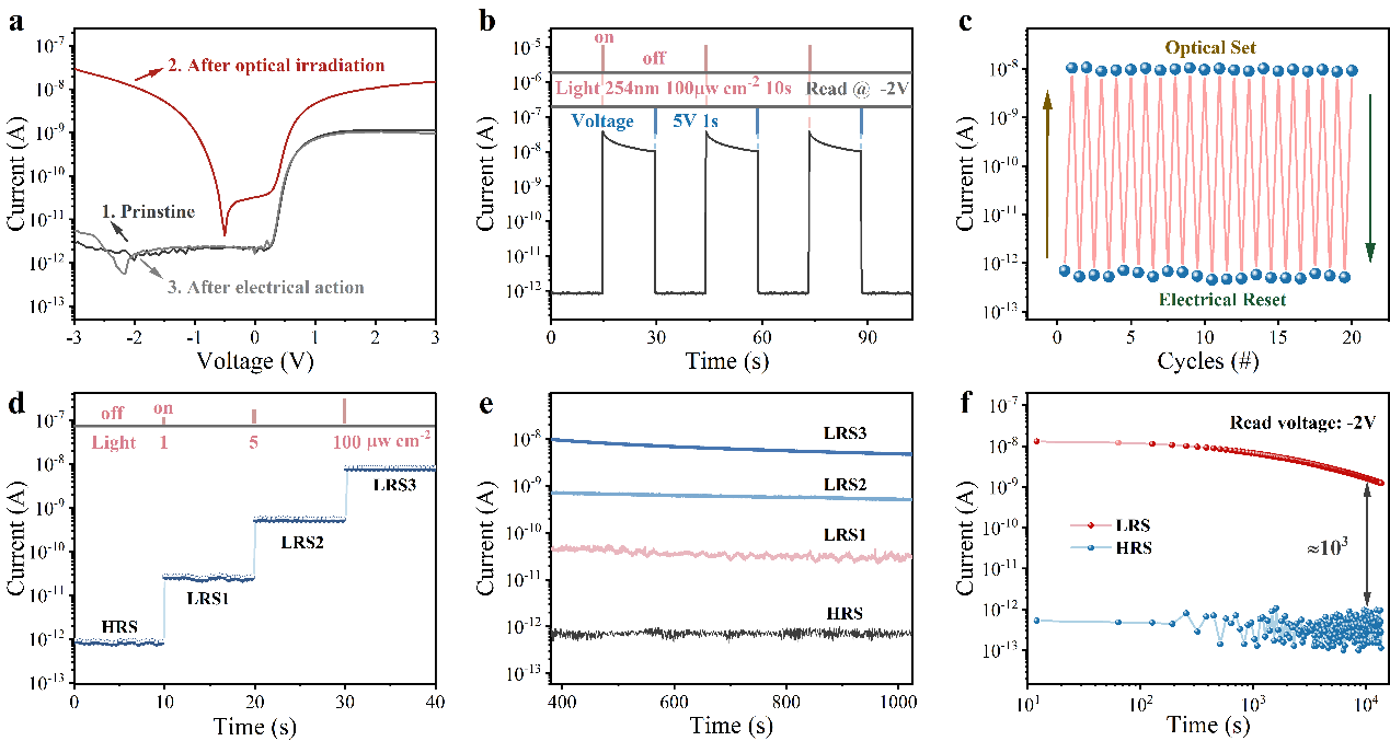 光电突触器件集成了光感知与信息处理的功能,以其优异的信号传输速度、高带宽、低串扰和低功耗等优点,成为了实现视觉神经形态计算技术的新兴功能器件。然而瞬态光触发响应特性通常导致不稳定的存储器保持时间和受限的电流响应范围,对神经网络系统的开发和实际应用构成重大挑战。