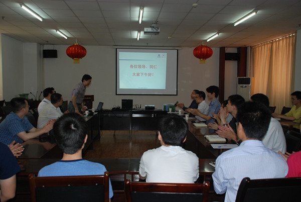 6 月1日 下午,应学院邀请,重庆仪表材料学会秘书长,《功能材料》杂志社副社长谌立新、学会顾问杨亲民、学会副秘书长唐逾、编辑部主任李峰、编辑部副主任陈东一行五人来AV狼 交流。交流会在综合实验楼二楼会议室举行,由曾毅副院长主持,苑进社教授、余鹏教授等部分老师和研究生参加了此次交流。会上就功能材料的发展及与功能材料相关的研究、学术论文的发表等问题做了交流沟通。会后,苑进社教授还陪同谌立新副社长一行参观了光学工程等实验室。
