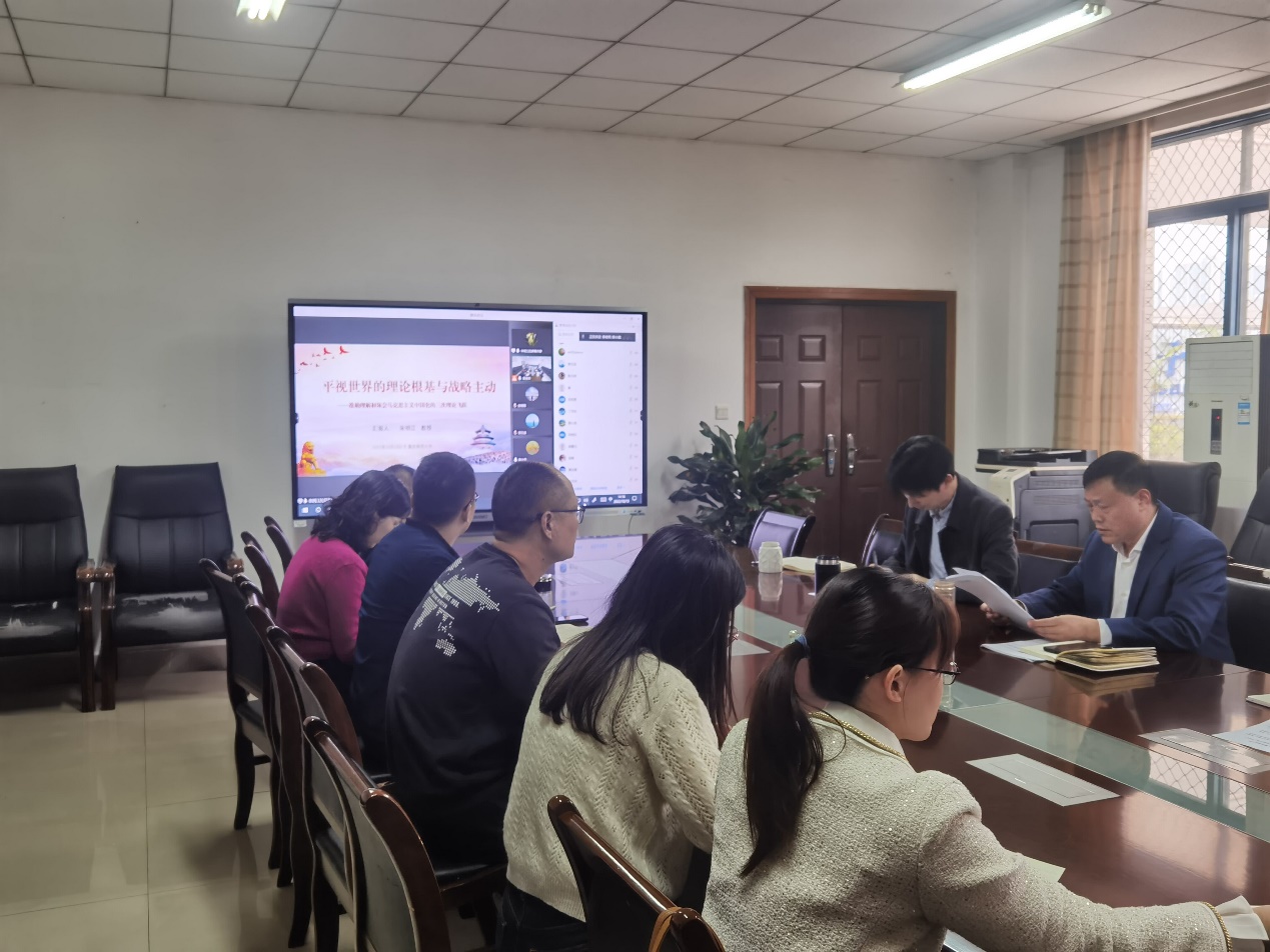 全体教职工带来了题为“平视世界的理论根基与战略主动”专题辅导报告,学院全体教职工参加了学习讲座,本次学习活动由学院党委书记杨云主持。